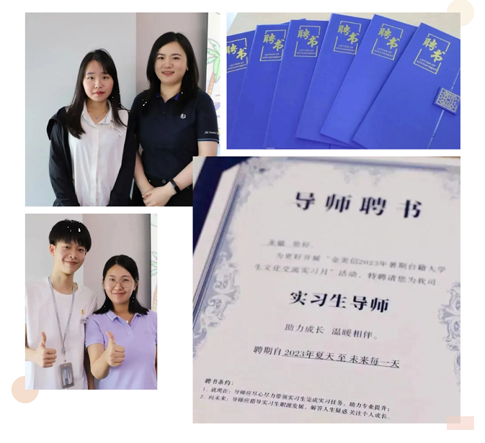 很珍惜此次的实习机会,从金美信消费金融为实习生们准备的入职礼包、一系列定制化课程、实习导师制等都感受到了公司对于这次实习活动的重视,让我对接下来的实习生活充满了期待。在后续的实习过程中,我将会努力学习职场技能,认真完成工作任务,为未来正式迈入职场做好准备。
