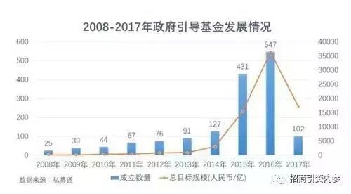 据统计数据,截至2017年7月底,国内共成立1660支政府引导基金,目标规模超过8万亿元。其中,2016年新设立政府引导基金547支,披露的总目标规模超过3.5万亿元,2007年截至前7个月,共设立政府引导基金102支,披露的总目标规模超过5000亿元。
