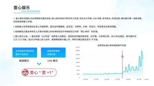 相比其他国内的其他传统经纪公司,壹心娱乐更大的优势是逐步建立了自己的体系化、流程化的工作方式,具体表现就是,各个部门可以直接对接艺人的各种日常事务,不需要事事经过几位合伙人。这让她们有足够精力放在公司管理上面。