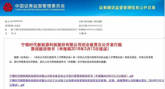 3月13日,新京报记者在证监会官网看到,宁德时代已在3月12日更新了公司招股说明书。这一新能源行业巨头或正在加速其上市之路。
