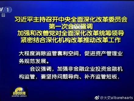 会议指出,规范金融机构资产管理业务,要立足整个资产管理行业,坚持宏观审慎管理和微观审慎监管相结合,机构监管和功能监管相结合,按照资产管理产品的类型统一监管标准,实行公平的市场准入和监管,最大程度消除监管套利空间,促进资产管理业务规范发展。