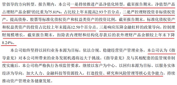 第一,推进产品净值化转型。招行2017年末净值型产品占理财产品余额的比重已经达到75.81%,同比提升2.93个百分点,这个占比应该是上市银行中最高的。我们暂时无法论证招行此时的“净值型产品”是否完全符合监管层对净值型产品的要求,但至少在产品形态这一层面,招行的调整步伐是远远快于其他行的。