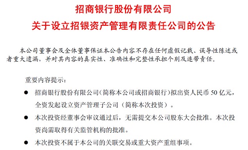招行拟设立全资子公司应变资管新规