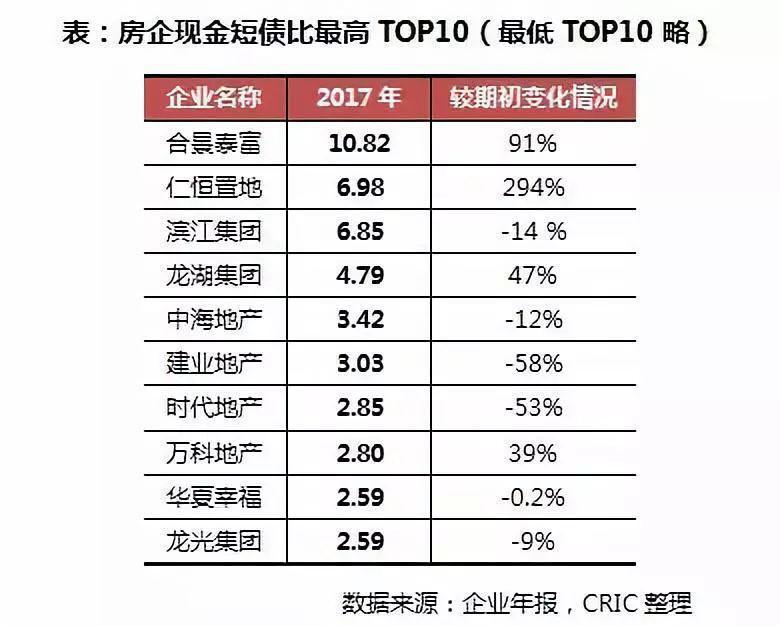截至2017年底,龙湖现金持有量为267.6亿元,现金短债比为4.79,现金较充裕,可完全覆盖短期债务,在现金短债比最高的千亿房企中,排名第一。
