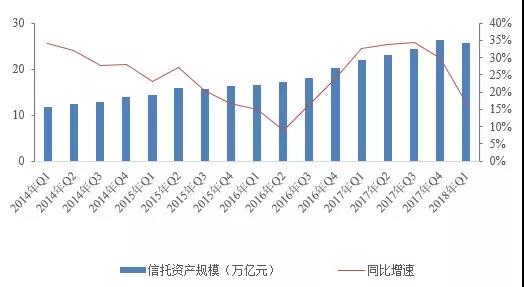 图1 2014年Q1—2018年Q1季度信托资产及其同比增速