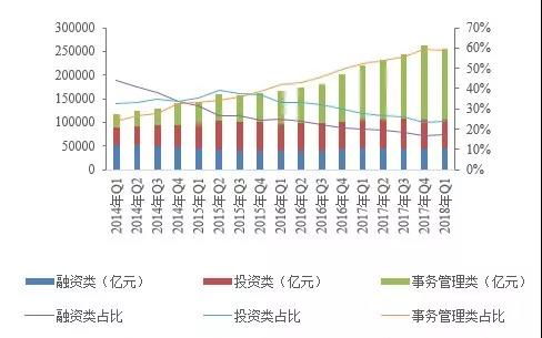 图2 2014年Q1—2018年Q1信托资产按功能分类的规模及其占比