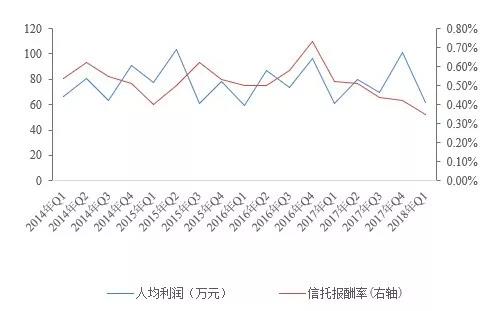 图7 2014年Q1—2018年Q1季度人均利润与信托报酬率