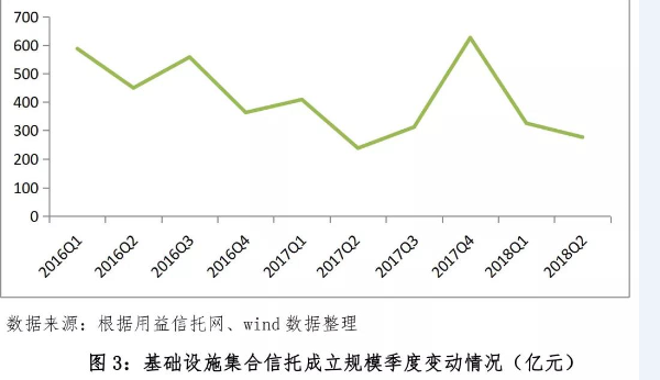 从图3来看,由于对地方政府负债的严格控制,政信业务上半年的发展受限,2018年一二季度成立规模均有下滑。但在政府支持基础设施建设、稳定经济增长的大背景下,政信业务将面临两方面的利好:一是存续政信项目面临的流动性风险或将降低,地方政府可以获得更多资金,缓解当前较大的还款压力;二是对新增融资需求仍有增加,毕竟基础设施建设投资仍要保持一定增长。因此,下半年预计政信业务将比上半年有所恢复,并呈现增长趋势。