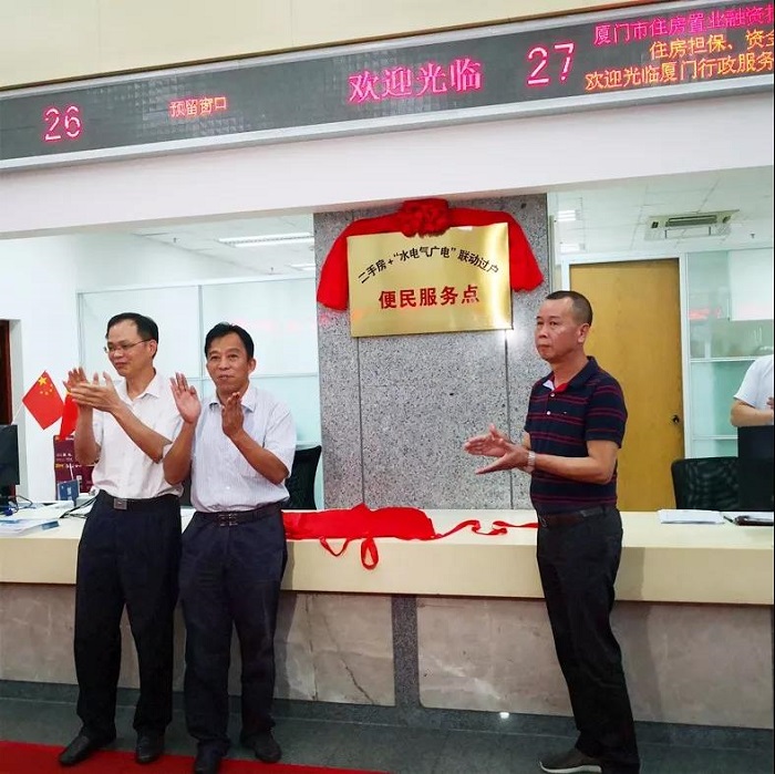 10月18日,厦门市自然资源和规划局、厦门市住房保障和房屋管理局、厦门市行政审批管理局在市行政服务中心一楼C厅举行“二手房与水电气广电网络联动过户便民服务点”揭牌仪式。