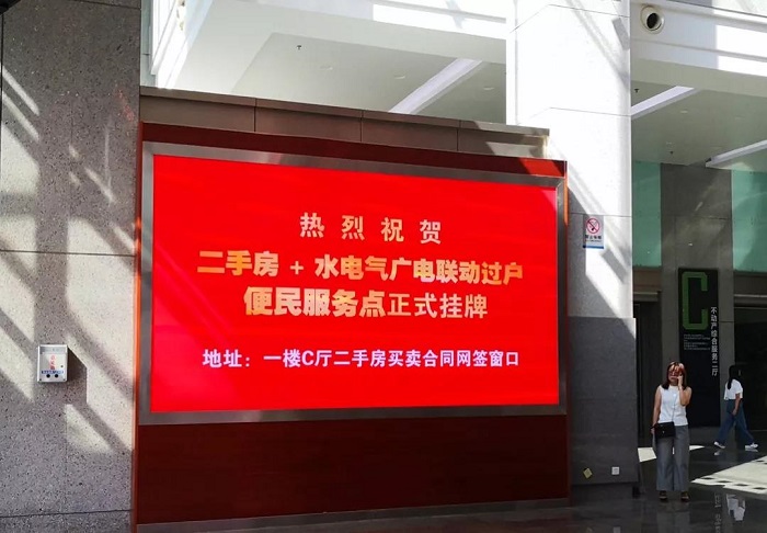 通过信息共享,用“数据跑”来代替“人员跑”,按照“一套资料、一表申请、一窗受理、一站服务”的原则,实现二手房网签时与水、电、气、广电过户“一窗受理 联动办理”。