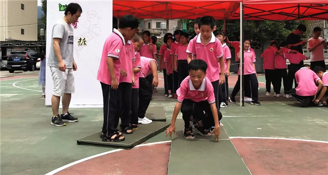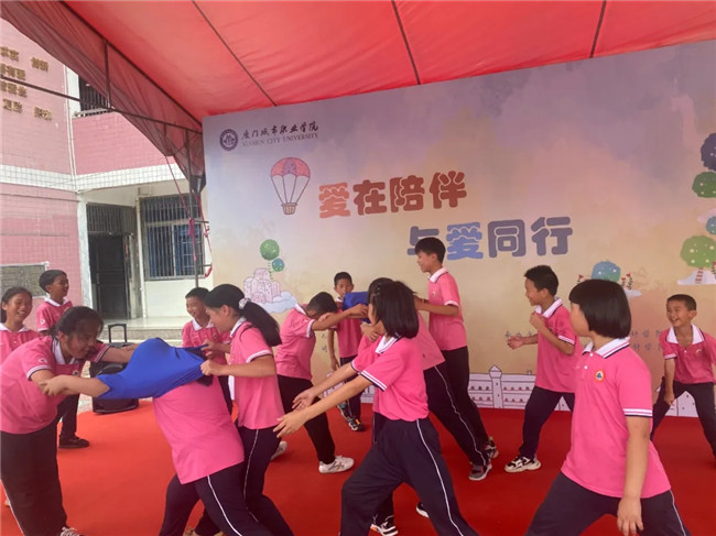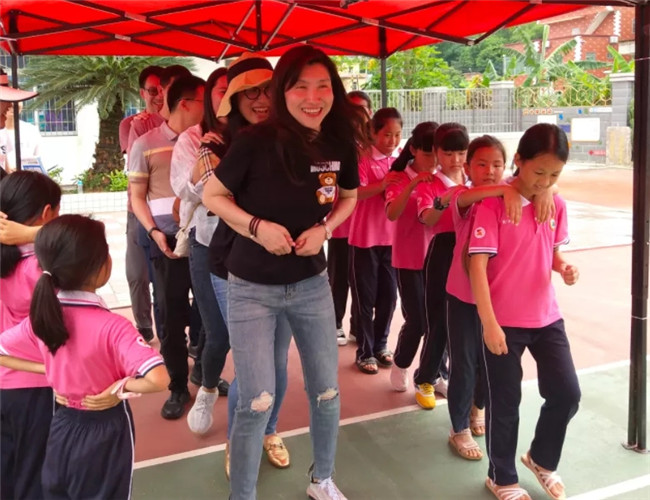 六月的阳光下,党员们与学生们来到澳溪小学操场,通过精心设计的欢乐同行、金蝉脱壳、三人四足、过河拆桥等趣味游戏以及准备小奖品,并于学生们共同组队竞技,培养了学生们在游戏中遵守规则、互相帮助、团结协作的精神,让学生们在繁忙的学子中得到放松和快乐;通过互动交流,把孩子们带到了欢乐、趣味的海洋里。