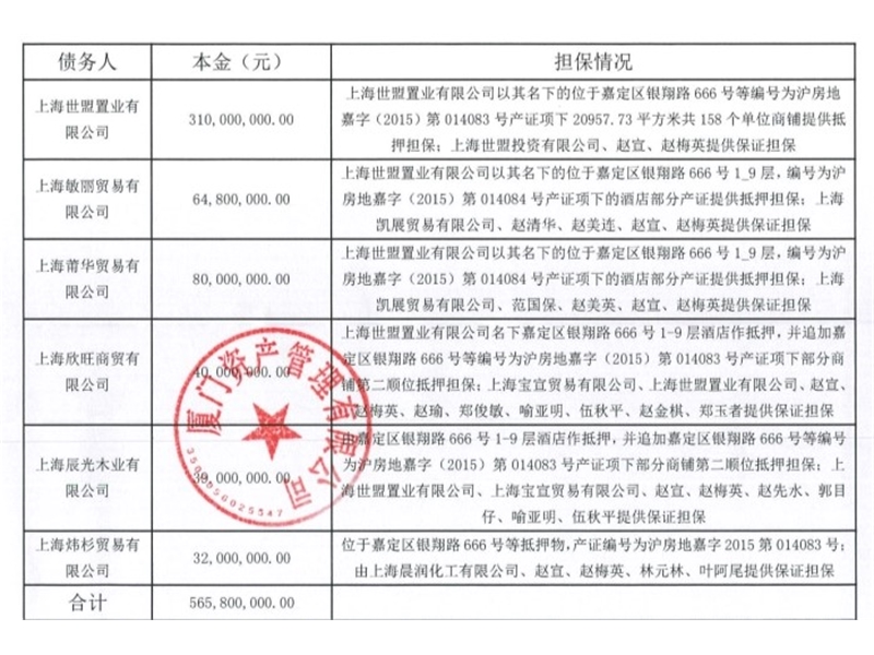 我司拟对名下上海世盟置业有限公司等6户不良债权资产进行公开处置,处置方式:债权转让...