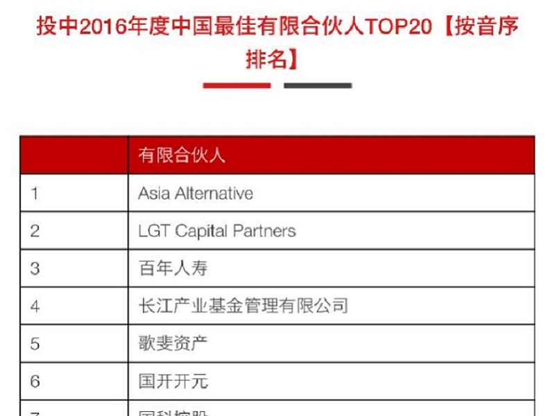 4月12日,投中集团2016年度榜单隆重揭晓。厦门创投荣登中国最佳有限合伙人TOP20。 ...