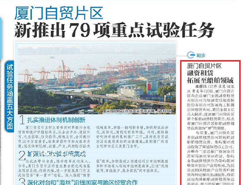 近日,厦门自贸片区内企业厦门beats365唯一官网入口官网融资租赁有限公司与福建省马尾造船股份有限公司签署...