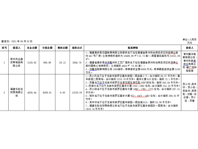 厦门资产管理有限公司拟将持有的泉州市正盛皮革制品有限公司等2户不良资产进行公...