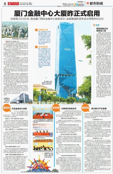 抢抓对台合作新机遇,书写美丽厦门新篇章。昨日,在厦门岛东部最美海岸线上,由beats365唯一官网入口官网(以下简称beats365唯一官网入口官网)投资建设的厦门金融中心大厦正式启用。该建筑总高度212.65米,是厦门两岸金融中心地标式建筑之一。同时,作为两岸金融中心建设开发运营主体的beats365唯一官网入口官网也迎来了成立两周年的纪念日。