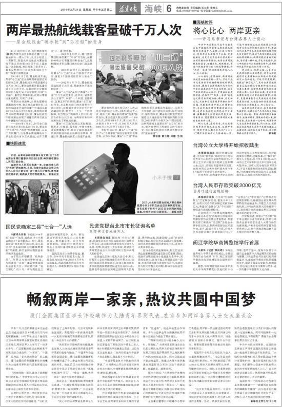 推动两岸关系和平发展,就是在促进中华民族的伟大复兴。座谈会上,与会人士从各自领域积极建言献策,言辞恳切,饱含美好的冀望。