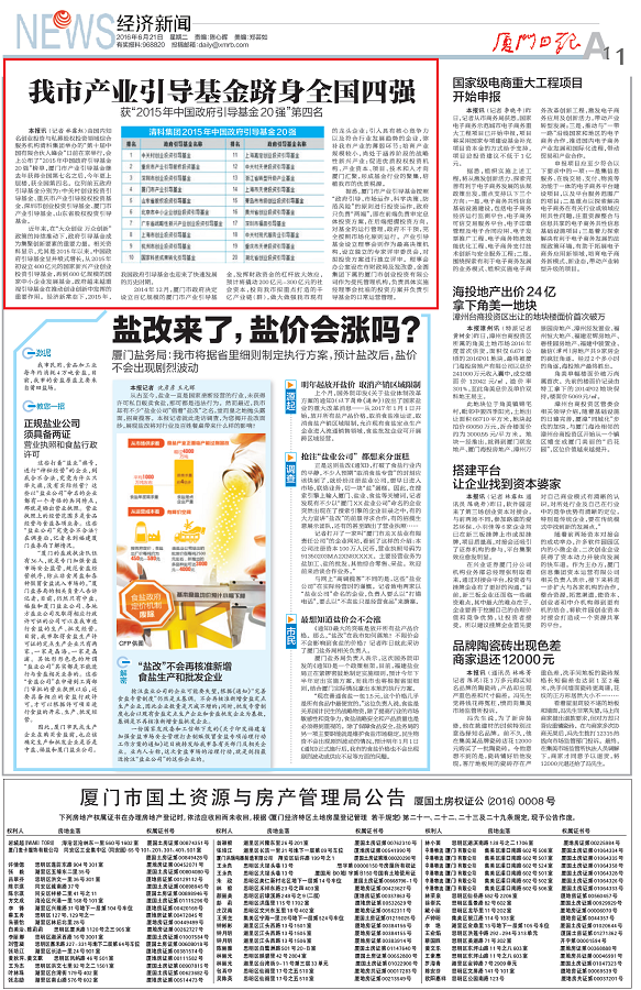(刊发于2016年6月21日《厦门日报》A11版,头版导读)