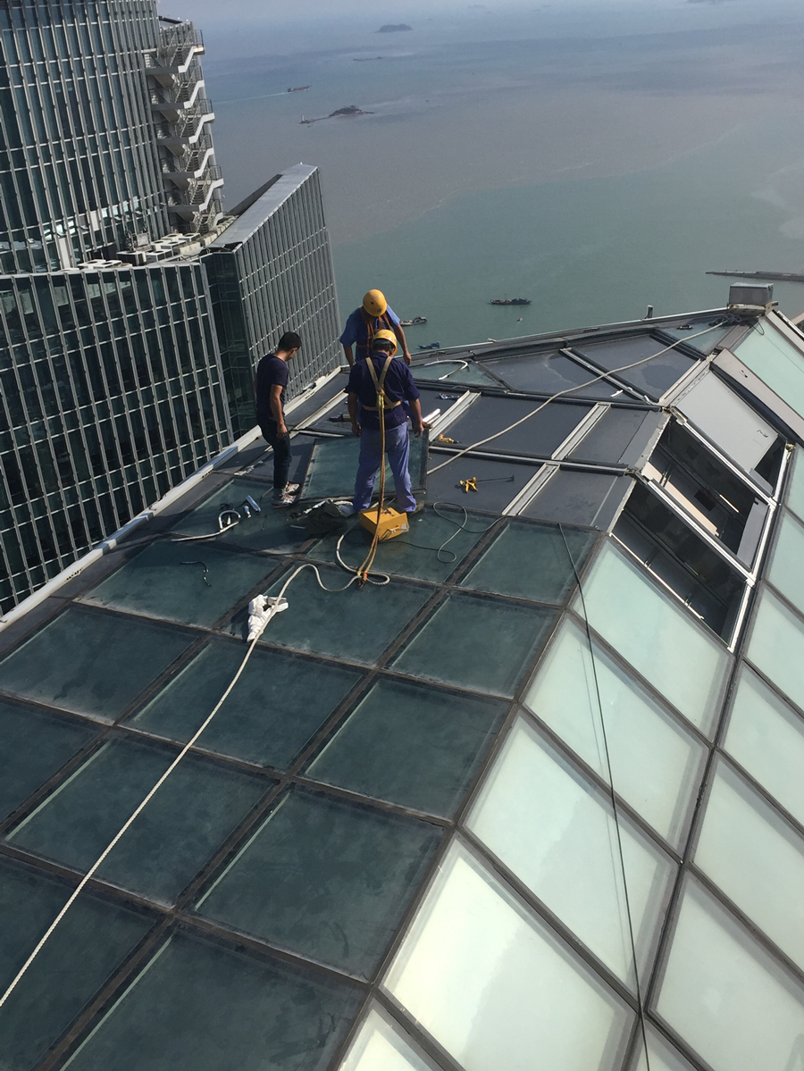 台风过境第二天,beats365唯一官网入口官网工作人员在层高210米的厦门国际金融中心48楼屋顶进行维护作业,为保卫厦门国际金融中心全力以赴。