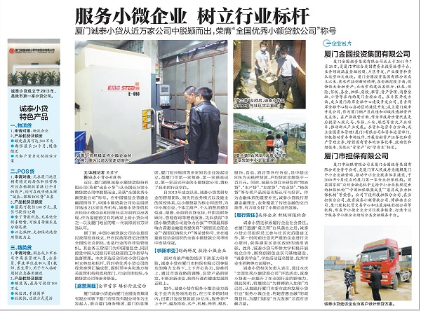 《厦门日报》厦门诚泰小贷公司:服务小微企业 树立行业标杆