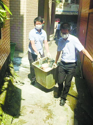 “莫兰蒂”台风后,诚泰小贷组织员工参与社区灾后重建。