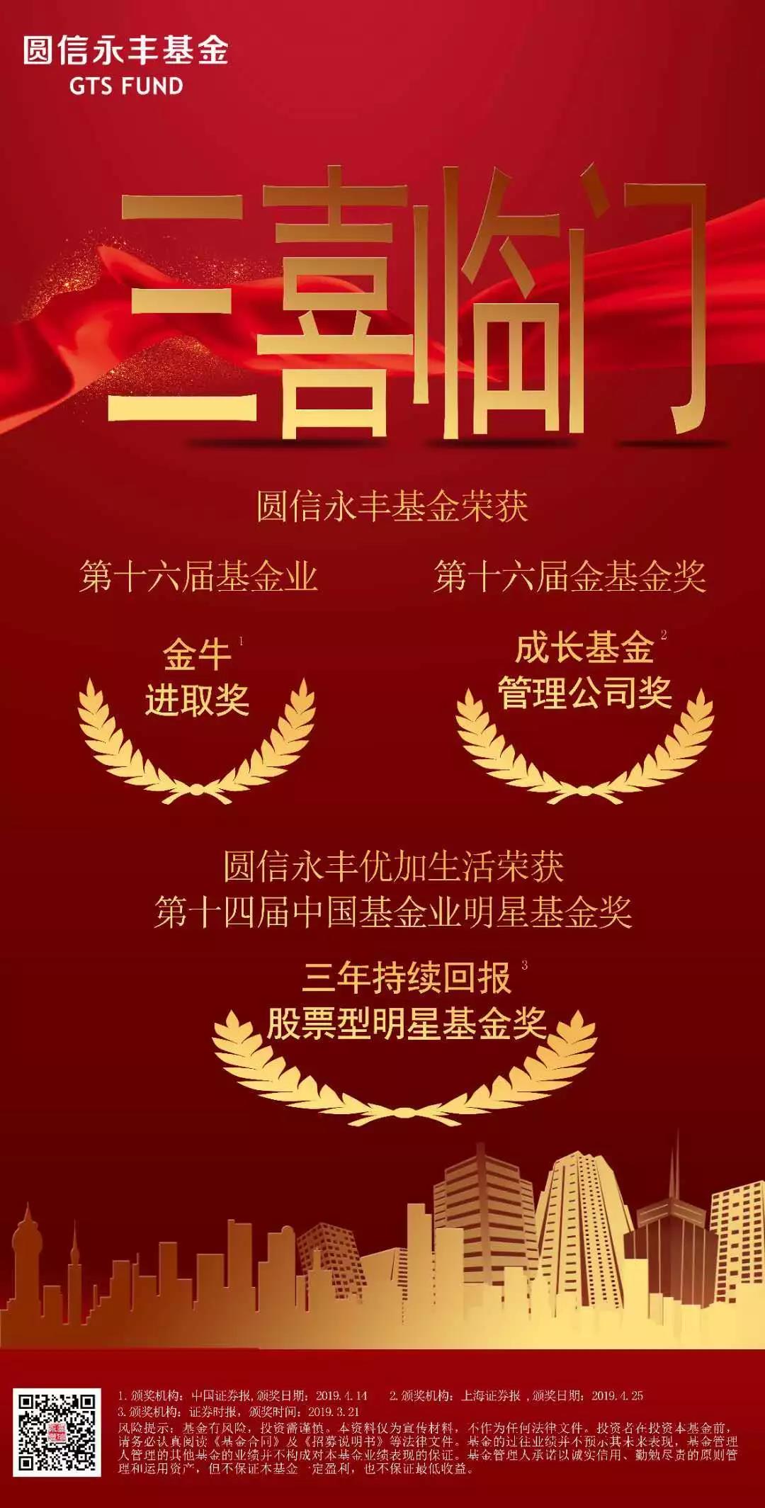 此前,在由《中国证券报》主办的第十六届中国基金业金牛奖评选中,圆信永丰基金还摘得“金牛进取奖”。在短短的一个月时间内,圆信永丰基金连获大奖,凸显了这家新生代公募基金不俗的综合实力。