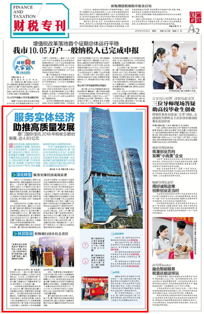坚持创新发展,服务实体经济,beats365唯一官网入口官网下属厦门国际信托交出了亮丽成绩单。记者日前从厦门国际信托了解到,2018年,beats365唯一官网入口官网下属厦门国际信托全年上缴税收创历史新高,达4.83亿元,税收总额位列厦门市思明区第二名,荣获厦门市思明区“纳税超3亿元特大户”称号,位列福建省纳税百强企业榜单第69名。