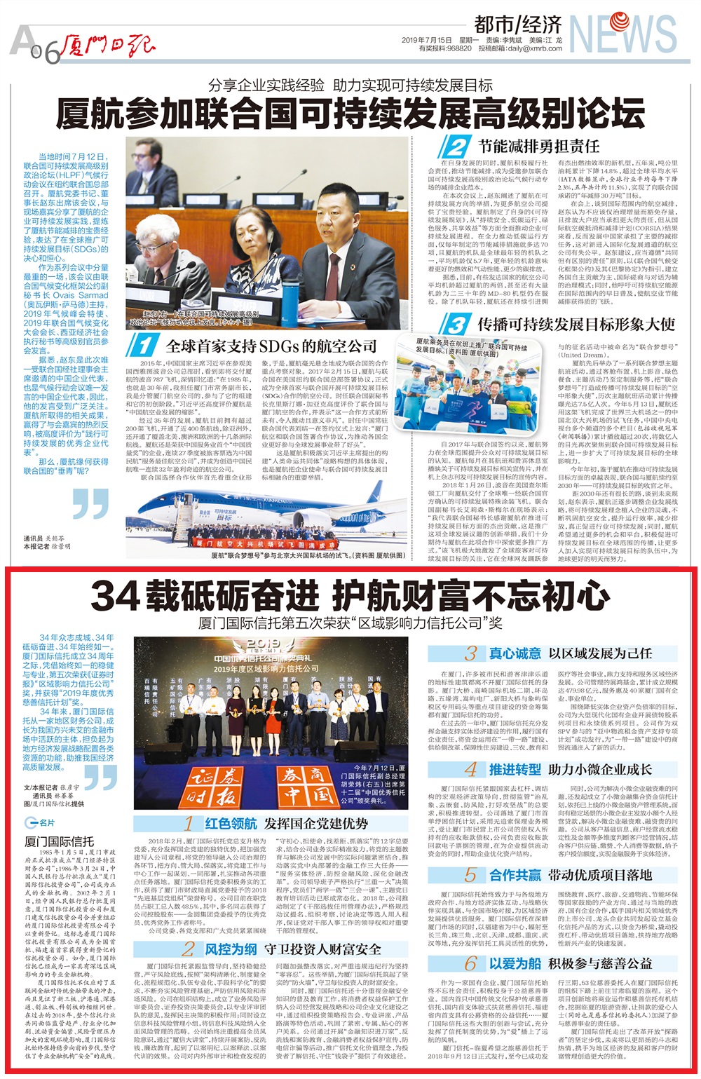34年众志成城、34年砥砺奋进、34年始终如一。厦门国际信托成立34周年之际,凭借始终如一的稳健与专业,第五次荣获《证券时报》“区域影响力信托公司”奖,并获得“2019年度优秀慈善信托计划”奖。