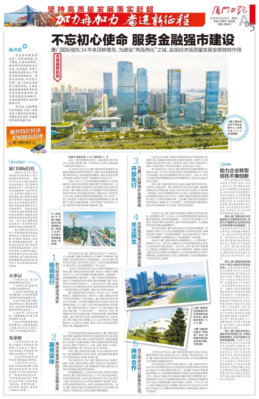 今日起,本报将推出系列报道,与您一同感受厦门国际信托承载托付服务特区经济、护航财富管理的发展之路。