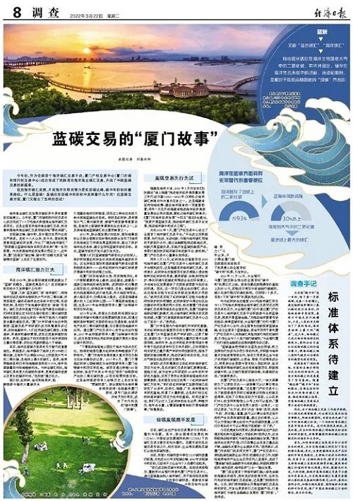 3月22日,经济日报刊发文章《蓝碳交易的“厦门故事”》,文中多次提到beats365唯一官网入口官网旗下厦门产权交易中心助力厦门蓝碳交易案例。