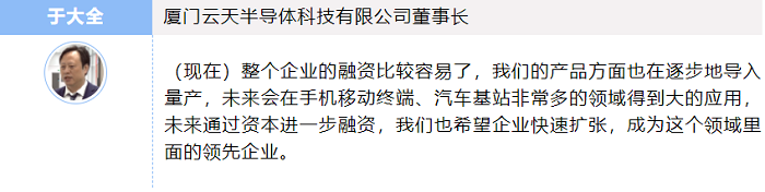 位于海沧的厦门云天半导体科技有限公司是我市一家半导体先进封装技术企业,具备国内先进半导体封测领域的稀缺产能。目前,正在筹备C轮融资。企业负责人告诉记者,他们的快速发展离不开市产业投资基金的精准支持。此前,企业处在由研发向量产过渡的关键时期,急需大量资金。市产业投资基金的受托管理机构厦门创投了解到企业融资需求后,组织多家优质产业资本对其进行尽调评估,最终,由市产业投资基金的参股基金中电中金基金领投,厦门创投主动管理的绿色低碳等基金跟投,并带动外部数家投资机构跟投,助力云天半导体完成超过数亿元的B轮融资。