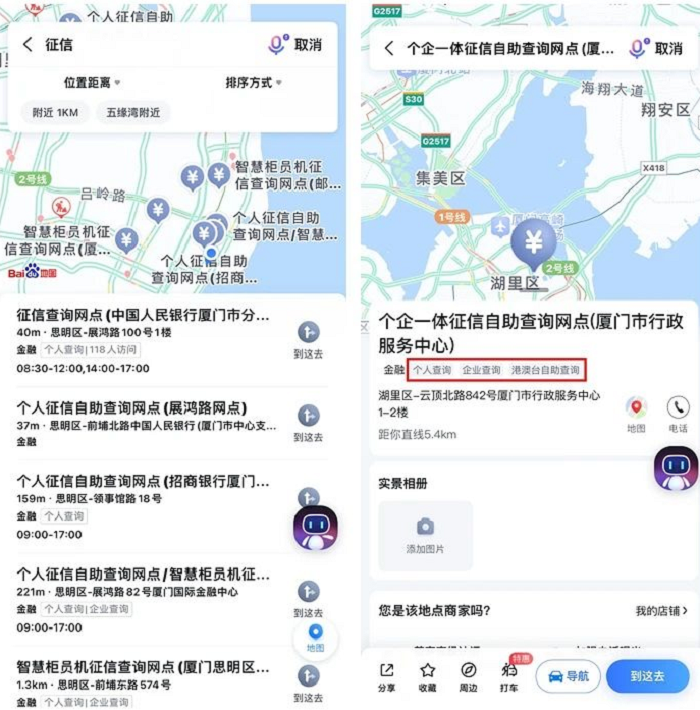 百度地图、高德地图查询征信代理点
