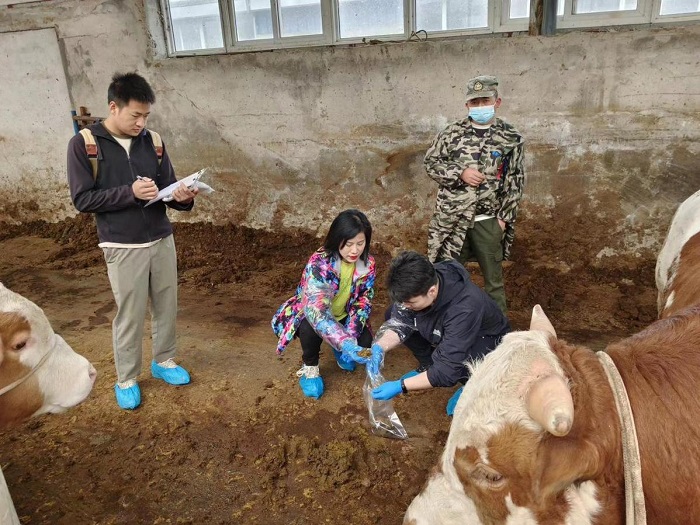 泾源县肉牛养殖场牛粪取样(供图)
