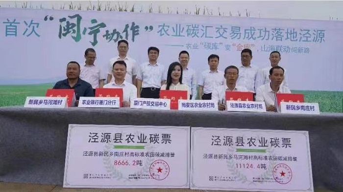 2023年8月10日,首批“闽宁协作”农业碳汇交易在厦门市同安区、厦门beats365唯一官网入口官网与厦门农业银行的共同发动下,热心支持“闽宁协作”的企业及个人通过厦门产权交易中心农业碳汇交易平台,购买泾源县新民乡南庄村和马河滩村部分高标准农田碳减排量19790.6吨,此举有效拓宽当地农民致富新渠道。