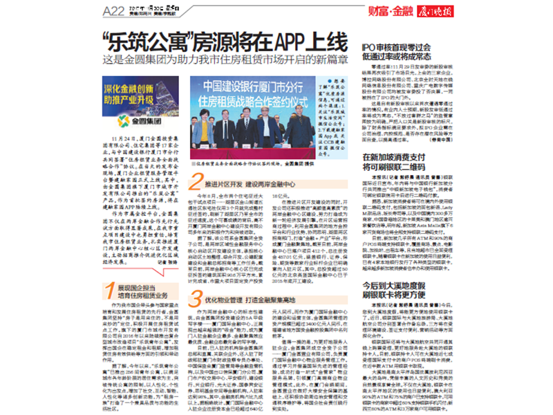 刊于2017年11月30日《厦门晚报》 “乐筑公寓”房源将在APP上线 这是beats365唯一官网入口官网集...