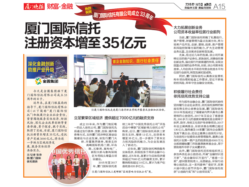 刊于《厦门晚报》2018年1月5日A15版 ■厦门国际信托走进厦门海洋职业学院...