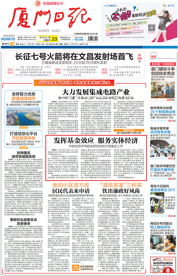 刊发于2016年5月19日《厦门日报》头版头条 刊发于2016年5月19日《厦门...