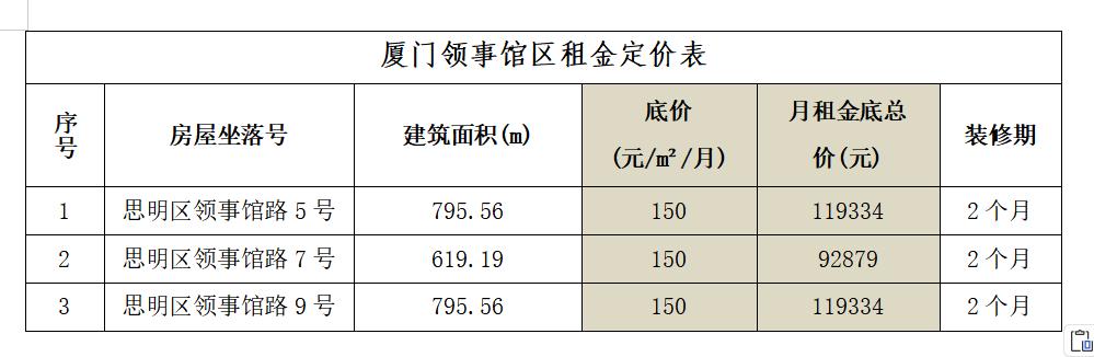 (一)招租项目:厦门领事馆区