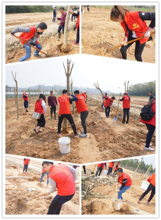上午8点,所有人员准时集合,出发前往目的地。到达目的地后,所有人员以抽签的形式选择搭档,两人一组共同完成植树任务。