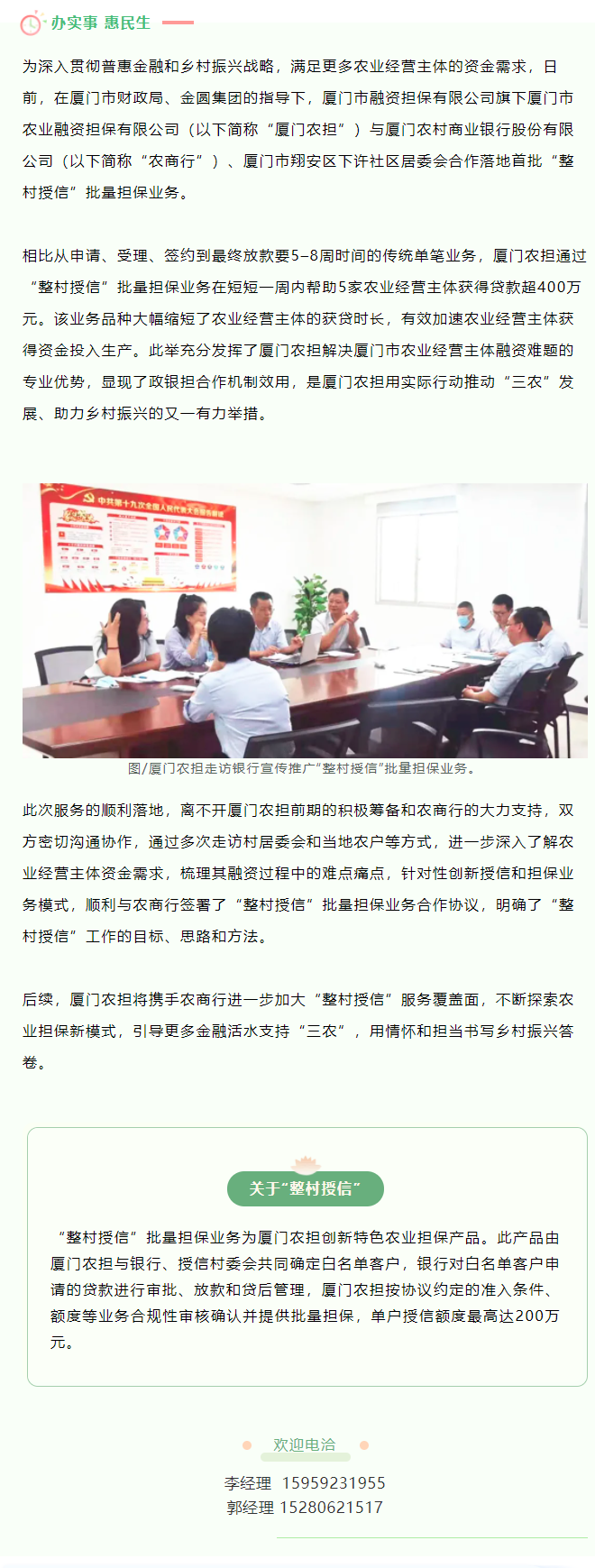 助力乡村振兴 | 厦门农担落地首批 “整村授信”批量担保业务