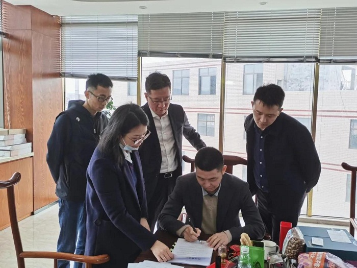 2020年12月22日,技改基金服务信托发放第一笔贷款,图为厦门国际信托和合作银行赴企业进行合同面签。