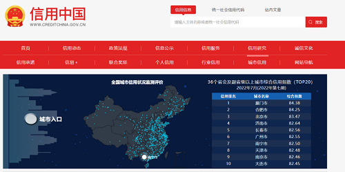 近日,国家公共信用信息中心在“信用中国”网站发布了“2022年第七期全国城市综合信用指数排名”,厦门市跃居全国36个省会及副省级以上城市综合信用指数第一,创历史最好成绩!