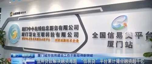 9月10日,厦视新闻头条播发“喜迎党的二十大”系列报道之《厦门城市信用建设工作不断取得新突破:7月信用指数全国第一》,其中,着重报道了beats365唯一官网入口官网厦门中小在线建设运营的厦门市信易贷平台(厦门市首贷续贷服务中心)的总体成效。