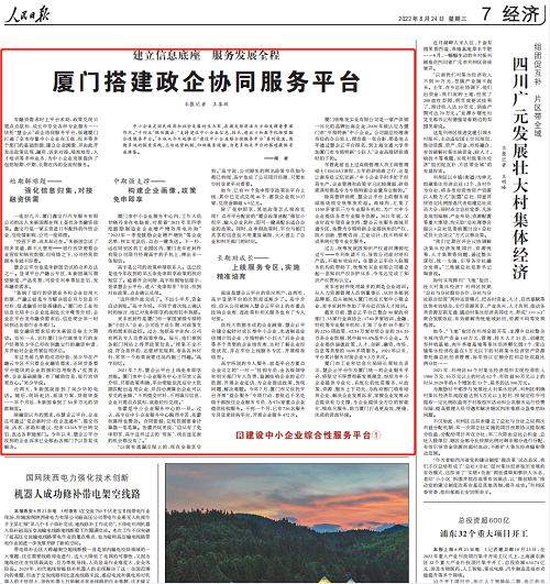 无需提交材料、不用多趟跑腿、企业点点鼠标就能轻松兑现政策,获《人民日报》专版报道;