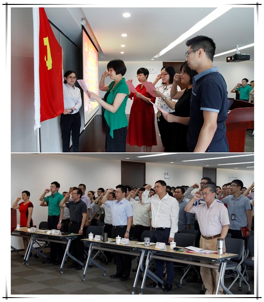 大会举行了新党员入党宣誓和全体党员重温入党誓词仪式。新老党员右手握拳面向党旗庄严宣誓,一句句誓词掷地有声、动人心魄,表达了他们对党的忠诚与热爱,要继承革命优良传统、为共和国的繁荣昌盛而奋斗终生的坚定信念。