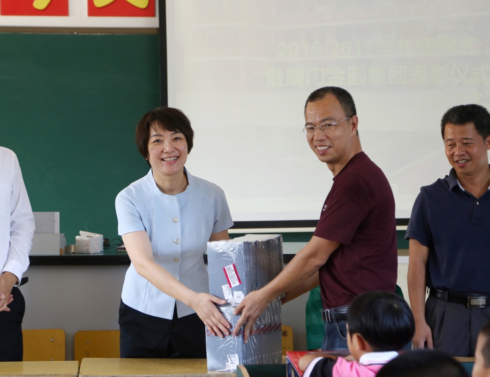 随后,薛总代表集团党委和各党支部向学校图书室捐赠了两套世界名著,在讲话中,薛总表示,希望孩子们在暑假期间,做到安全记心间、学习不怠慢、生活有条理、实践促提升,度过一个健康、愉快、安全的假期;金砖会晤即将在厦门举办,我们的家乡即将迎来难得的发展机遇,希望孩子们好好学习,早日成为一个对国家、家乡有用的人。