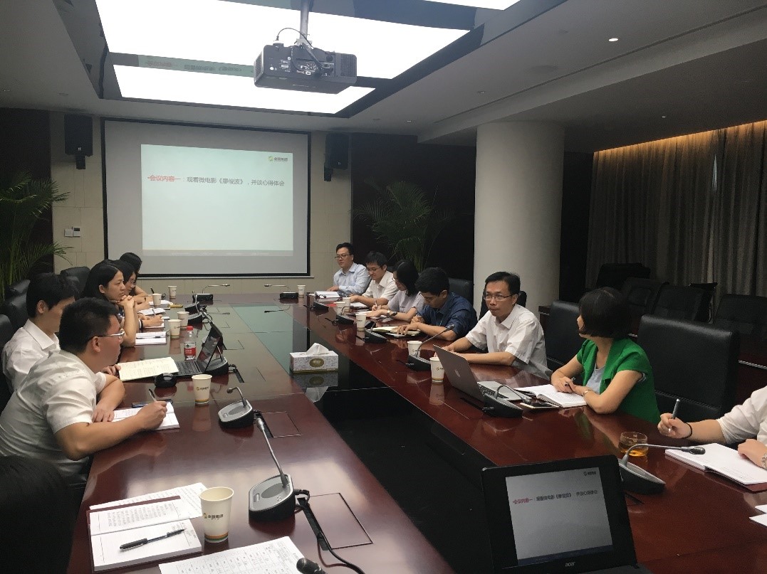7月17日下午,集团第一党支部在4501会议室召开党员大会,全体党员以集体观看微电影《廖俊波》的形式学习廖俊波同志先进事迹。