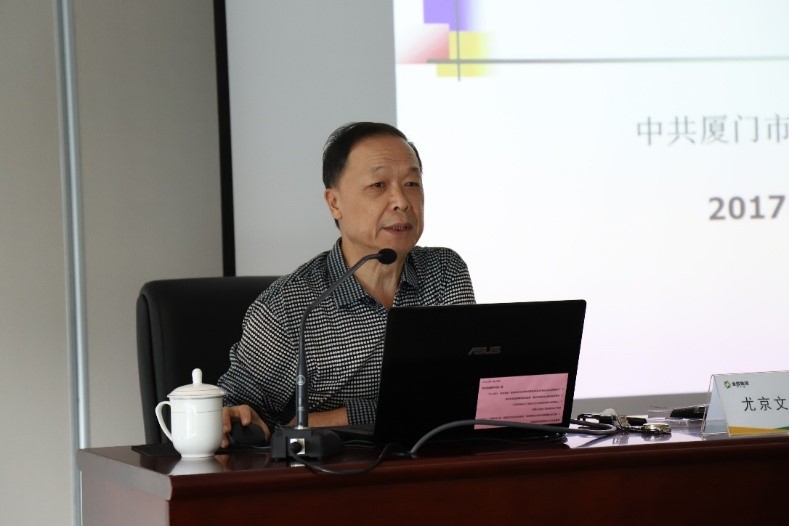 党的十九大报告深刻阐述了习近平新时代中国特色社会主义思想,描绘了新时代宏伟发展蓝图。认真学习宣传贯彻党的十九大精神,是全党全国当前和今后一个时期的首要政治任务,学习领会新时代、新思想、新使命等一系列新提法,对指导实践工作有着重要意义。11月14日下午,为使广大党员干部更全面地理解党的十九大报告精神,更准确领会思想精髓、核心要义,beats365唯一官网入口官网党委特别邀请厦门市委党校教授尤京文进企业为全体党员解读十九大报告精神。