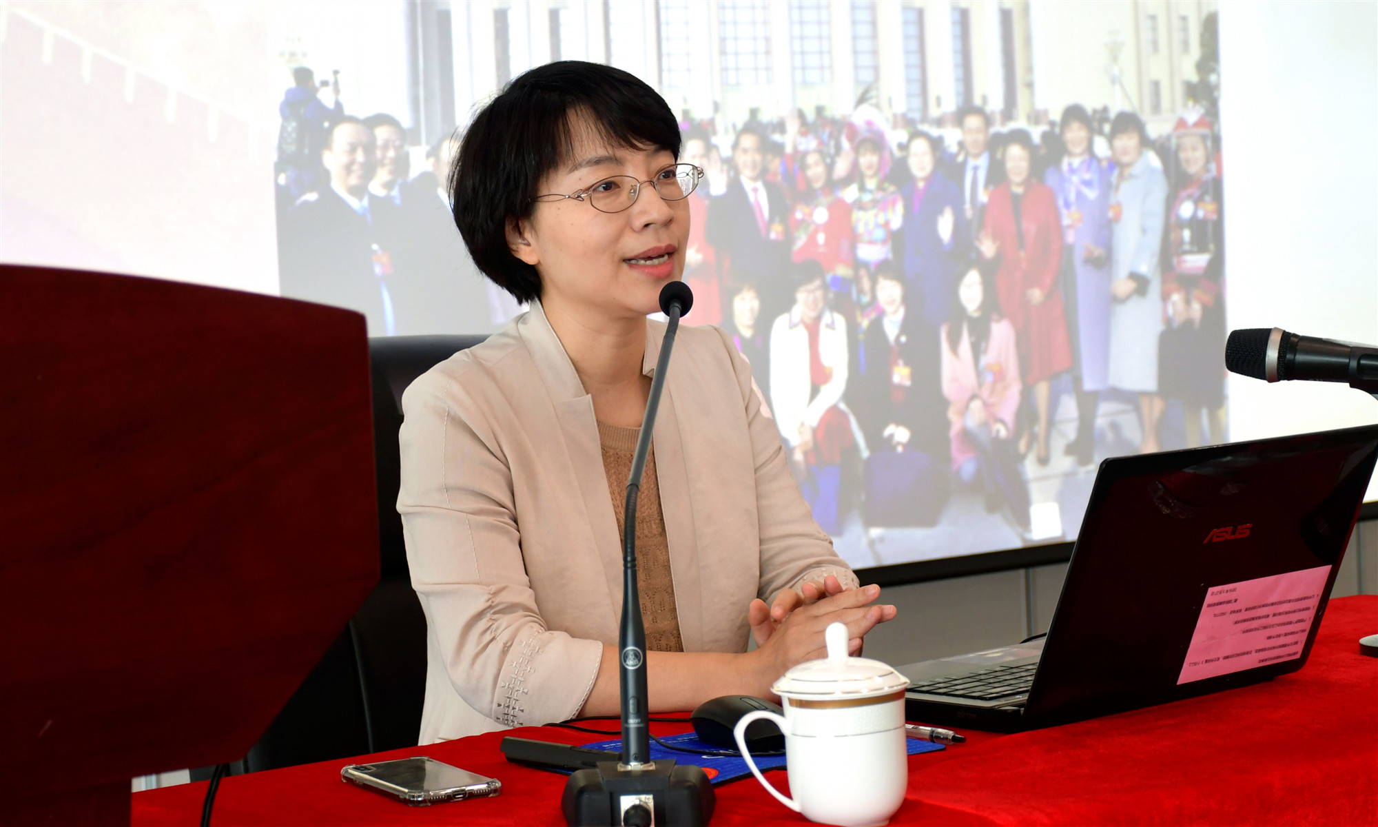 潘越教授分别从“大会概况”“大会主要精神”“福建代表团履职情况”“党和国家领导人参加福建团审议情况”等四个方面传达十三届全国人大二次会议精神。潘教授重点介绍习总书记参加福建代表团审议时的场景,细致入微地介绍每位代表在审议时的发言情况,逐字逐句地回忆习总书记对每位福建代表团成员的回应,并认真传达习总书记对福建工作重要指示精神:要营造有利于创新创业创造的良好发展环境,要发挥福建多区叠加优势,要探索海峡两岸融合发展新路,要做好革命老、中央苏区脱贫奔小康工作。她还满怀深情地重温习总书记对福建、对厦门的深切关怀。“福建是我工作过17年多的地方,对八闽大地一山一水、一草一木,特别是3900多万父老乡亲,我有着深厚的感情,离开福建后,我一直关注福建发展变化,为福建改革发展取得的每一份成绩感到高兴。”潘教授重复着习总书记的原话,仿佛将与会人员一同带入了“两会”现场,激励着大家进一步学懂弄通习总书记的重要讲话和全国“两会”精神,落实到一个个具体项目实施上,确保集团各项业务更好更快发展。