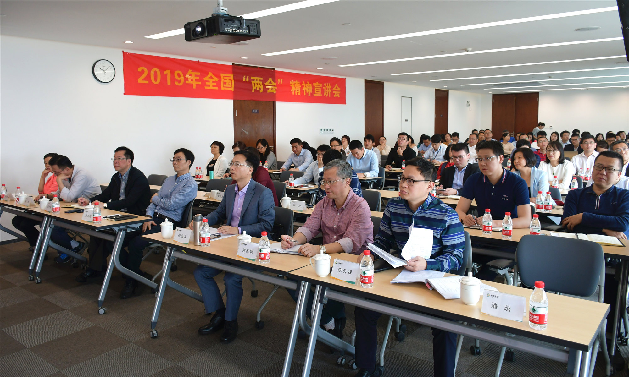 第十三届全国人大二次会议和全国政协二次会议在京召开,这是在喜迎新中国成立70周年之际召开的重要会议。为进一步学习贯彻习近平总书记参加福建代表团审议时的重要讲话精神以及全国“两会”精神,研究部署集团贯彻落实意见,集团党委特别邀请全国人大代表、厦门大学经济学院潘越教授来集团为全体中层以上干部作全国“两会”精神宣讲。宣讲会由集团党委副书记黄雀喧主持,集团党委班子成员以及来自集团各职能部门、子公司、青年智库等近百人参加集中学习。